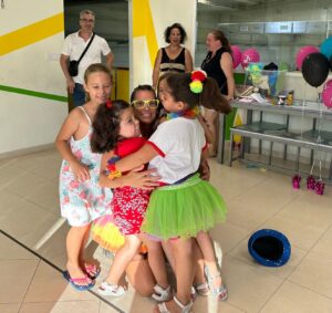 Terminaron el día saltando en unos hinchables. Ana abrazaba a su madre mientras le decía lo contenta y feliz que estaba. Ella es toda una guerrera, el año pasado le hicieron una traqueotomía y, con todo lo que eso conlleva, no pierde la ilusión de seguir cantando y bailando.