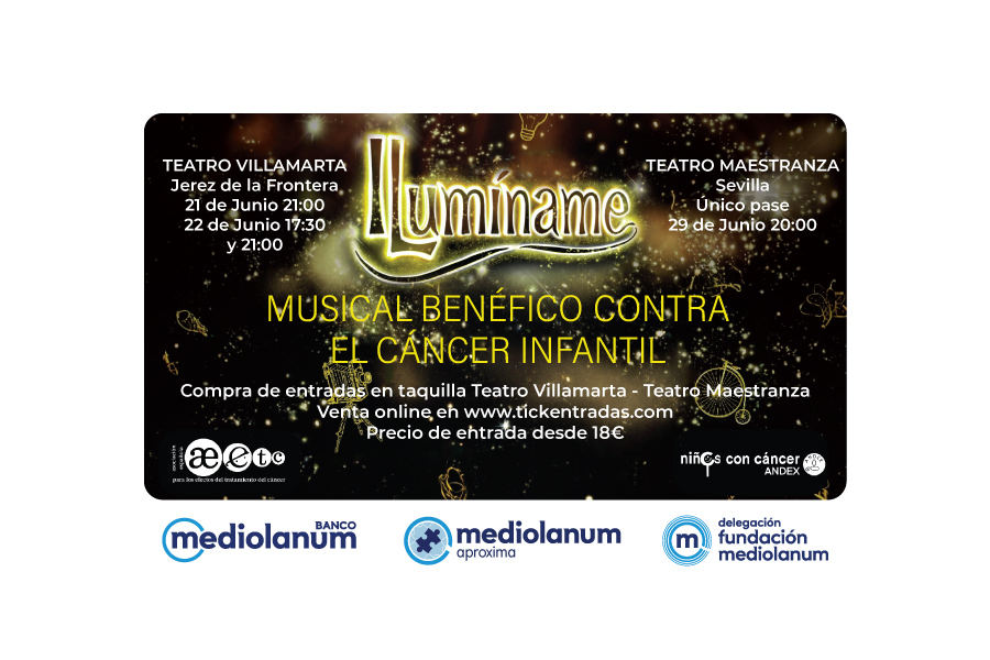El pasado mes de junio se celebró una iniciativa solidaria muy especial: el musical benéfico “Ilumíname” en favor de las asociaciones AEetc (Asociación Española para los efectos del tratamiento del cáncer) y ANDEX (Asociación de Padres de Niños con Cáncer de Andalucía). Durante tres días, repartidos entre Sevilla y Jerez de la Frontera, se hicieron varios pases del musical con la finalidad de recaudar fondos y ayudar a los niños y niñas enfermos de cáncer.